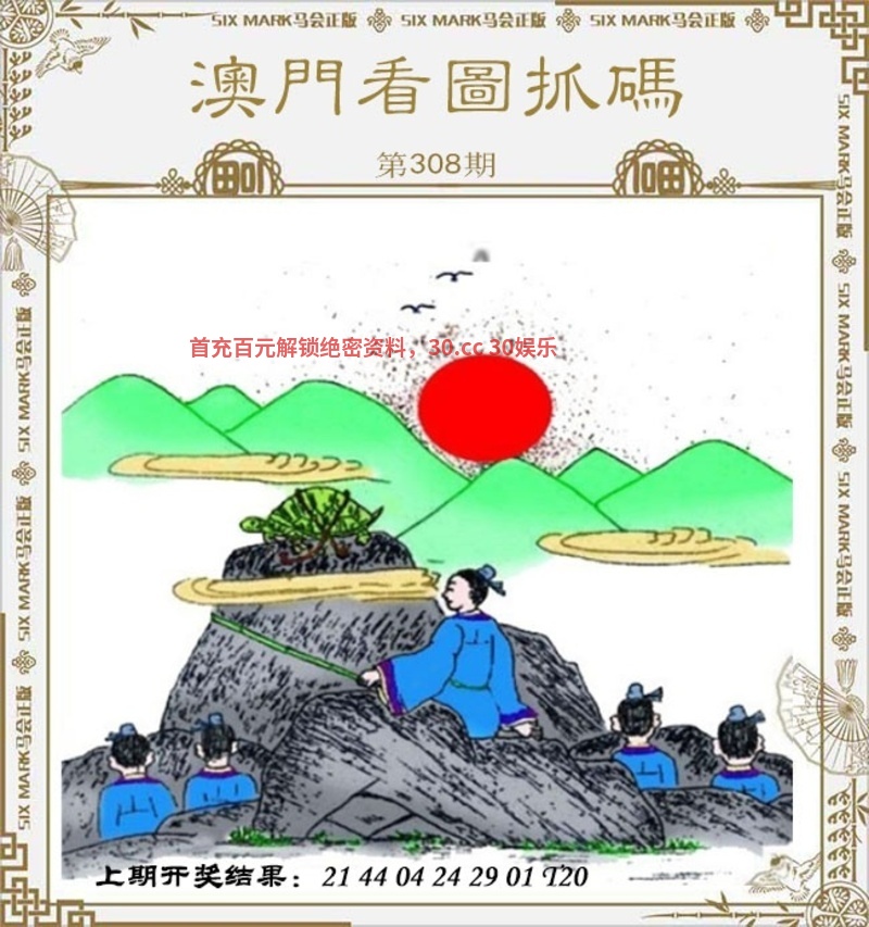 308期:【广西团队协手破解抓码图】【开兔39】 破解图文:图中有一位男子手拿着一个竹子看着前方的大乌龟,左右两边有四个人,远处有山有两只鸟和一座太阳。 综合九肖:鸡猪龙羊猴兔马狗虎 综合七肖:鸡猪龙羊猴兔马 |